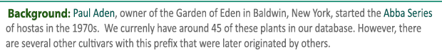 Paul Aden of New York registered this cultivar of unidentified parentage in 1990. A small size hosta, it grows