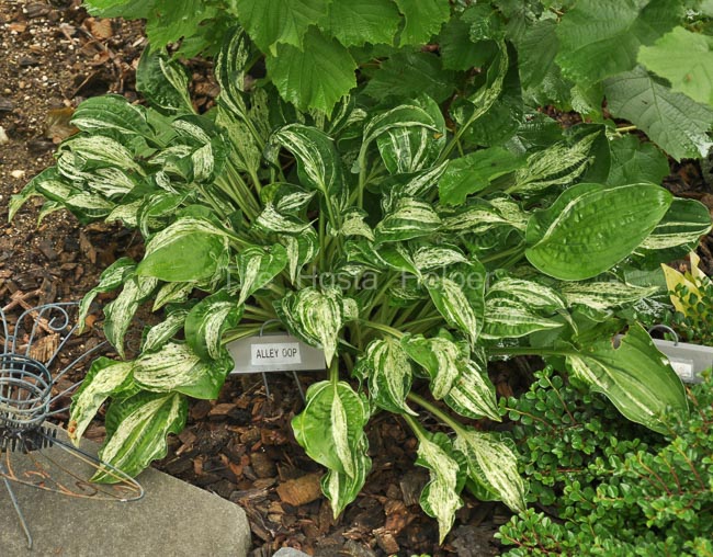 Alex Malloy of New York registered this sport of H. 'Aoki' in 2001. A small size hosta, it grows to about 10 inches in height and 21 inches in