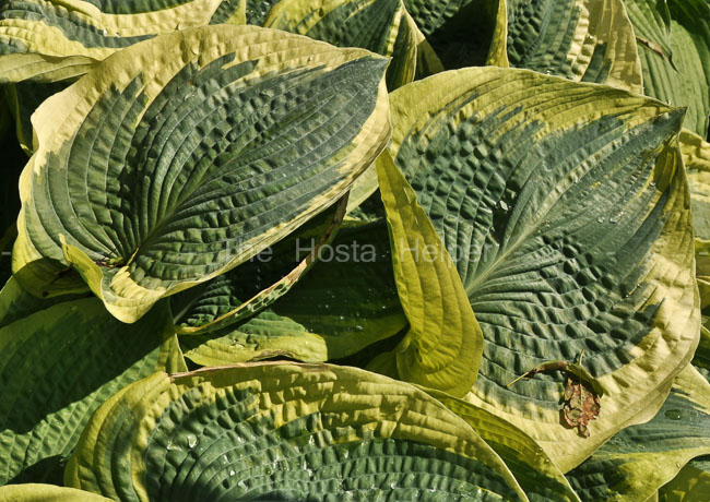 The New Encyclopedia of Hostas by Diana Grenfell (2009) states: "Slow to establish but eventually becomes a huge mound...Winner of the 2002 Alex J. Summers Distinguished Merit Hosta Award...Larger than its parent with a wider leaf margin."