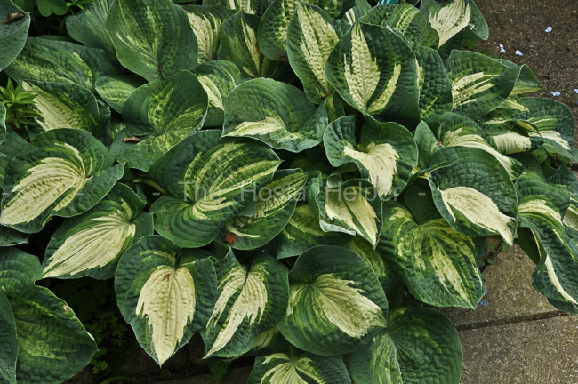 The image below was taken at the originator's garden and appears to have reverted to the H. 'Sieboldiana' type except for the white in the center of one leaf in the upper right corner.