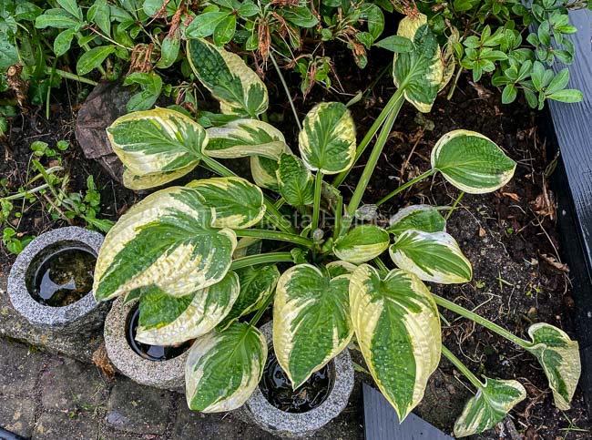 This sport of H. 'Fortunei Aureomarginata' was registered by Gerardus Heemskerk of Heemskerk Vaste Planten in the Netherlands in 2005. It forms a medium to large size mound of thick foliage and has lavender flowers in July.