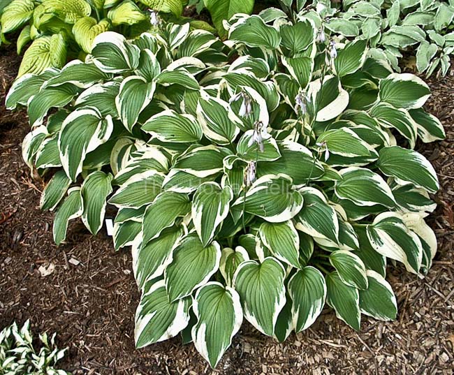H. 'Fortunei Albopicta' whose green-bordered leaves have a