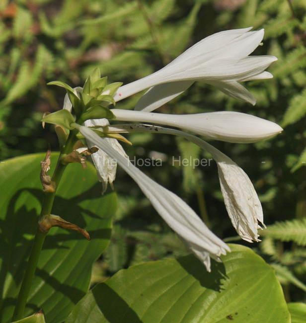 These spidery flowers are carried all around the stem unlike other hosta flowers