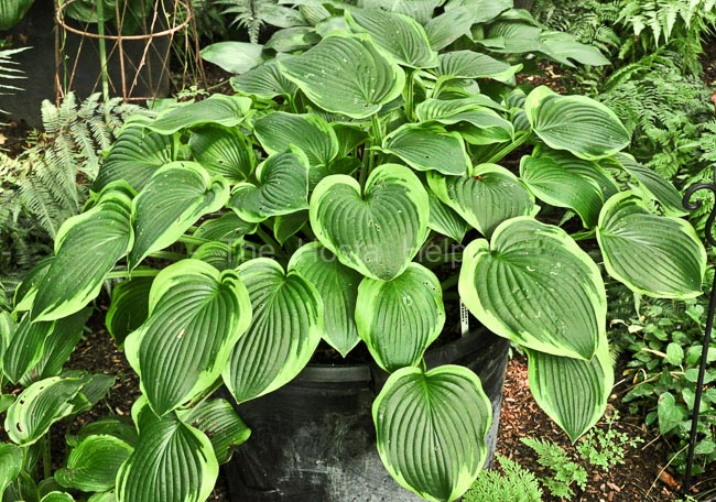 diameter and is considered a large size hosta. Near white flowers bloom from late June into July.