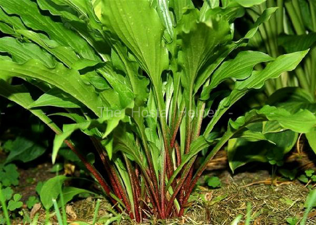 The Hostapedia by Mark Zilis (2009), "...red petioles are the most striking feature..."
