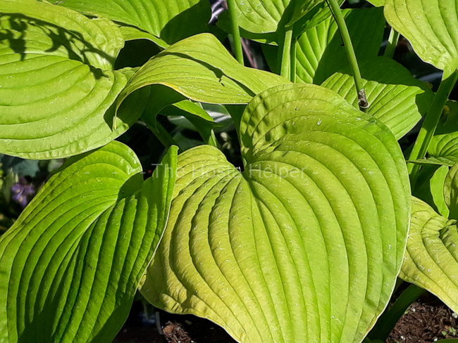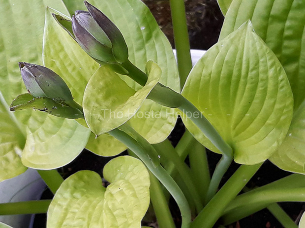The EuroHosta website lists this plant as Hosta Ventricosa Aurea but it would be more correctly named Hosta ventricosa 'Aurea' we think. Their description says that it "...has heart-shaped, yellow leaves with distinct venation. Violet flowers."