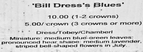 This cultivar was named after Dr. Bill Dress who retired as a professor of botany at Cornell University in 1982. The Adirondack Chapter North American Rock Garden Society notified us of his passing on December 15, 2011 at the age of 93.