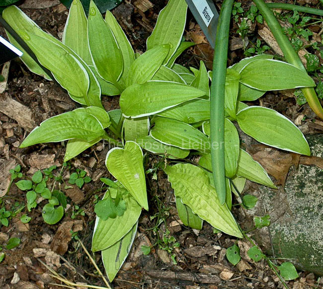 in 1986, this H. sieboldii 'Kabitan' seedling has a thin gold edge to the leaves. It is a medium size (12