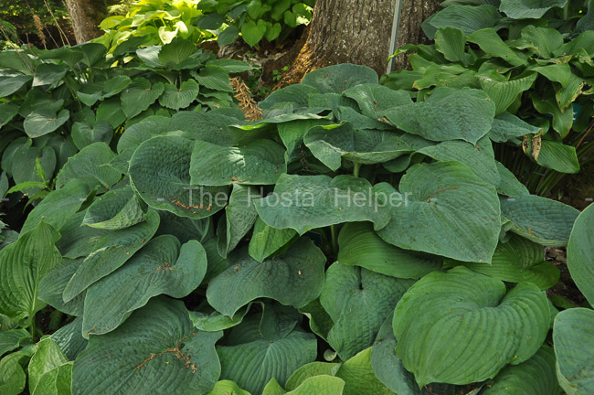 An open-pollinated seedling of H. 'Helen Doriot', this cultivar was registered by Peter Ruh of Ohio in 1998. The heavily corrugated leaves form a large size mound about 2 feet tall by 5 feet wide. Its near white flowers bloom in July.