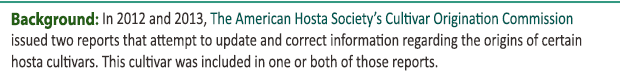 Field Guide to Hostas by Mark Zilis (2014), "It certainly is not a hybrid of 'Tokudama' and 'Elegans'