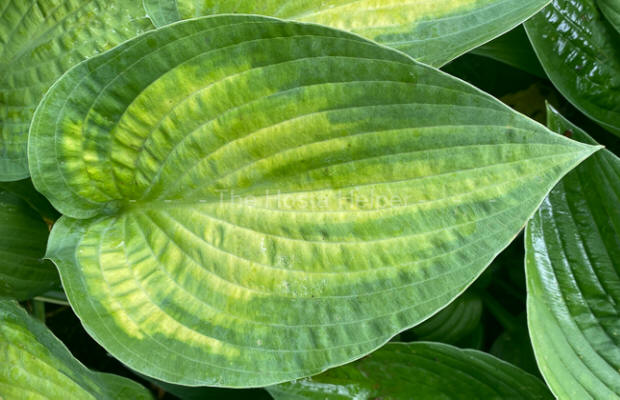 substance, is moderately corrugated and has a slight blue bloom on the leaf underside. The near