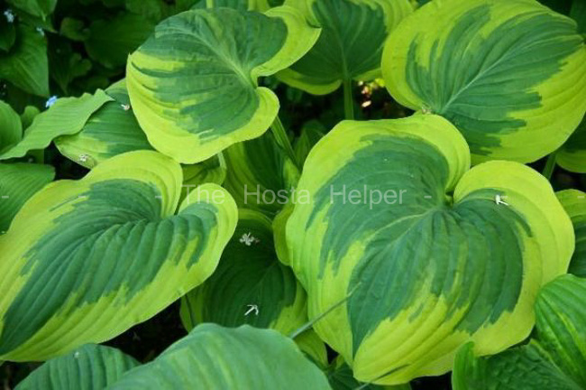 It should not be confused with H. 'Krossa Broad Band' which was also once known as H. 'Broad Band'.