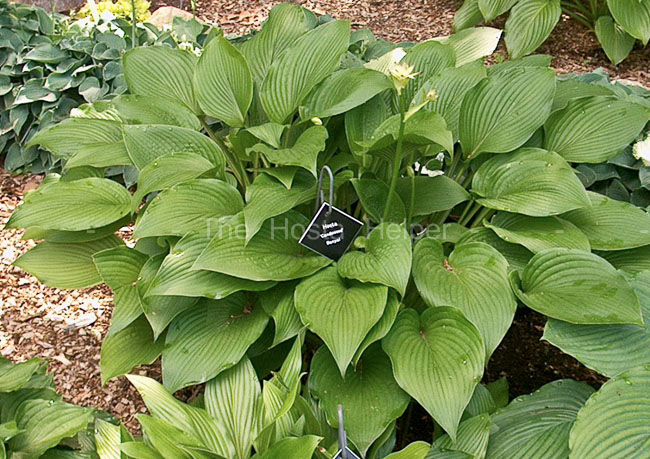 This H. montana type plant was introduced by Pauline Banyai of Michigan and registered by Stuart Asch. It forms a large, vase shaped mound with leaves that are ovate shaped and slightly shiny on the underside. The flowers are very pale lavender in color and appear in July.