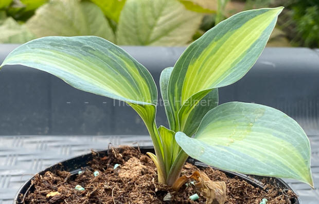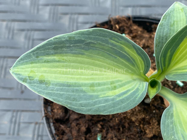 a spread of 28 inches. The blue-green foliage has creamy yellow