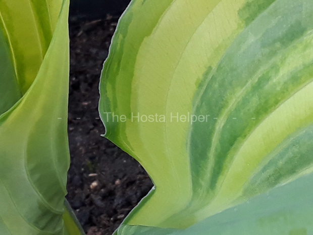 Originated by Volker Eschenbach of Planwerk  Staudengärtnerei in Germany, this non-registered cultivar is a sport of H. 'Sum and Substance'. It forms a giant size (36 inches high by 70 inches wide) clump with chartreuse colored leaves that have an unstable darker green streaked variegation. The leaves are moderately corrugated, have deeply lobed margins, are cupped both up and down and have a long, distinct tip. It has thick substance which  makes it resistant to slug damage.  From late July into August, it produces large pale lavender flowers on four foot tall scapes.