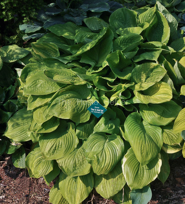 It is a giant size hosta about 28 inches high by 6 feet wide with slightly