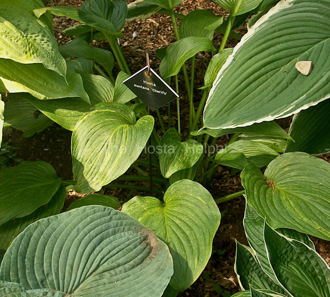Mikiko Lockwood in an article on The Hosta Library titled, A Little About Japanese Hosta Terms defines the term chirifu as speckled, mottled or overall variegated and the term oba or ooba as large leaf, 'Oba Gibōshi' or H. montana.