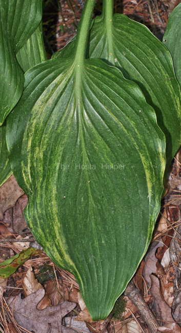 This is a streaked cultivar of the species, H. montana, that forms a giant size (32 inches high) mound of mottled foliage and flower scapes that reach over 6 feet tall. It was found in Japan and brought to the United States before 1990. This plant is sometimes mislabeled as H. montana 'Chirifu Tochigia'.