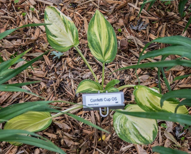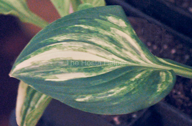 This is a non-registered cultivar of unidentified background from Nancy Krul of Belle Gardens in Michigan. It grows into a small size hosta about 10 inches in height and 2 feet wide with ovate, moderately corrugated leaves. Near white flowers bloom in July.