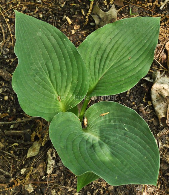 A hybrid of H. 'Sieboldiana' x H. 'Tokudama', this cultivar was registered by Clarence Soules of Indiana in 1990. It forms a giant size mound 28 inches in height by 75 inches wide. The leaves are very broadly ovate, rippled, heavily corrugated with thick substance. Near white flowers bloom from mid-June into July.