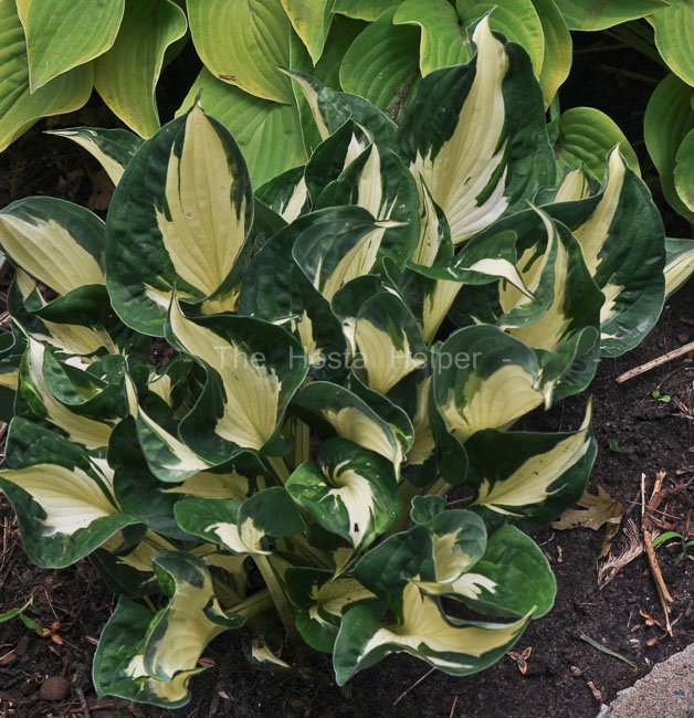 Registered in 2002 by Jim Schwarz of Jim's Hostas of Iowa (now owned by Uniquely Hostas of Wisconsin), this cultivar is a sport of H. 'Whirlwind'. This small to medium size plant has twisted, curled foliage with lavender flowers in late July.