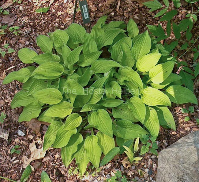 Alex Summers of Delaware named this plant after fellow hosta hybridizer, David Stone of Connecticut. It is a sport of H. 'Piedmont Gold' that forms a medium size mound with near white flowers from late June into July.