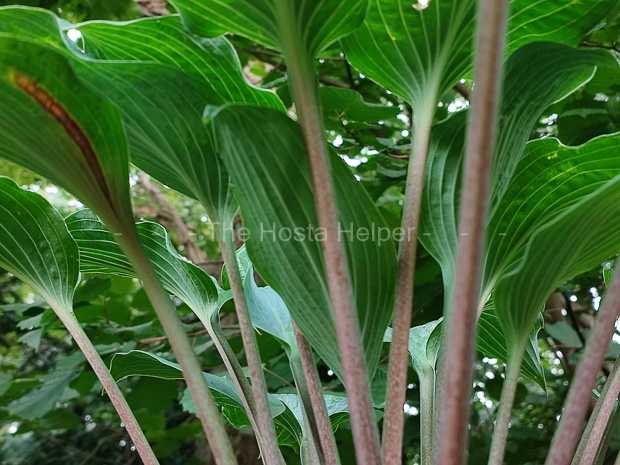 The New Encyclopedia of Hostas by Diana Grenfell (2009) states: "Grow at eye level to feature the attractive mauve petioles, which are unusual in a hosta with this leaf color."