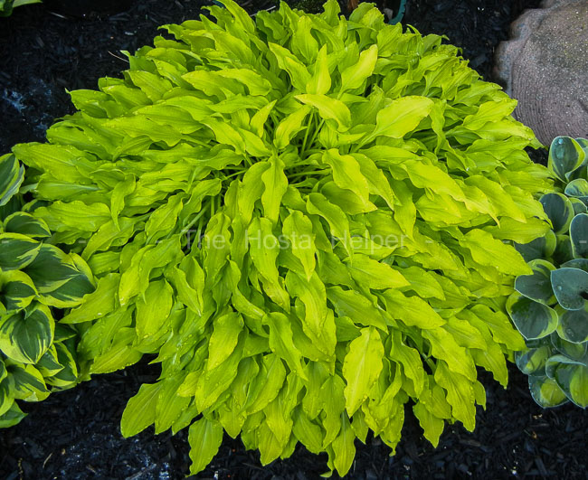 the myriad of tiny yellow hostas both for leaf color and rippled
