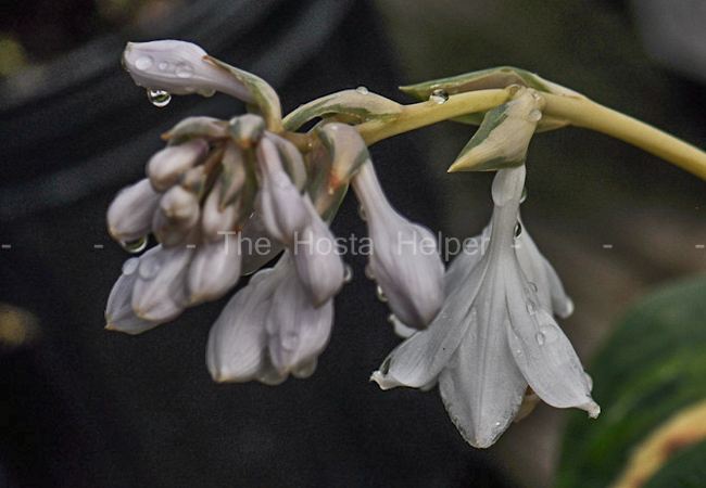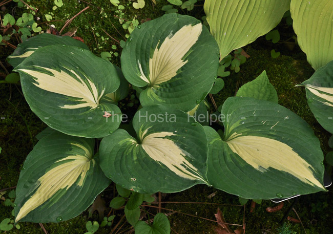 Originated by Jan van den Top of the Netherland and registered on his behalf by Registrar, Gayle Hartley Alley for The American Hosta Society in 2020, this cultivar is a sport of H. 'Great Expectations'. It is a medium to large size hosta which grows to about 19 inches in high by 34 inches wide. The foliage is moderate blue-green (116B RHS Colour Chart) with light yellow-green (145B RHS Colour Chart) medial (center) variegation. Its leaves vary from broadly ovate to nearly round in shape. They are slightly cupped, slightly corrugated, moderately wavy and glaucous on top. Near white flowers with very pale lavender stripes bloom in June followed by viable seeds. The pale yellowish-green scapes have variegated bracts and stand 20 to 24 inches tall.