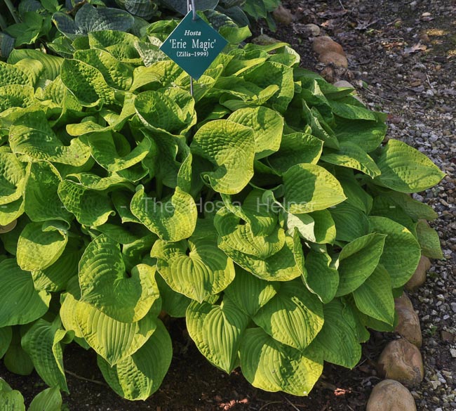 Mark Zilis of Illinois registered this reversed sport of H. 'Midwest Magic' in 1999. It forms a medium size (18 inches high) mound of foliage with pale lavender flowers in July.