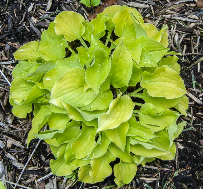 This sport of H. 'Cheatin Heart' was registered by Kirk Brill of Iowa in 1999. This medium size (10 inches high) hosta has slightly wavy foliage of average substance. It has pale purple flowers that bloom in mid-July.