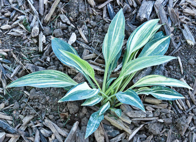 This streaked sport of H. 'Dark Star' was originated by Danny Van Eechaute from Belgium. It grows into a medium size hosta about 12 inches in height and 24 inches in width. Lavender flowers bloom in mid-summer.