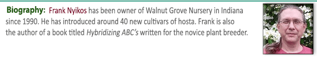 Hosta Journal (2013 Vol. 44 No. 1) states that, "Frank Nyikos...wanted to register the cultivar name H. 'Faux Chihuly' in 2011.