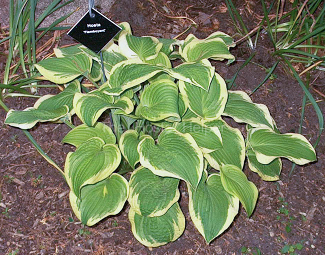 The picture above is of a plant clearly labeled 'Flamboyant', however, it appears to be one that "stabilized" as a hosta with creamy white marginal variegation.