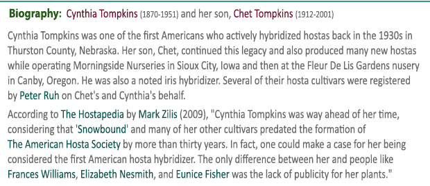 Originated by Chet Tompkins of Oregon and registered by Paul Aden of New York in 1978, this medium to large size hosta has chartreuse leaves with multicolored streaks. It has funnel shaped, lavender flowers on 22 inch scapes.
