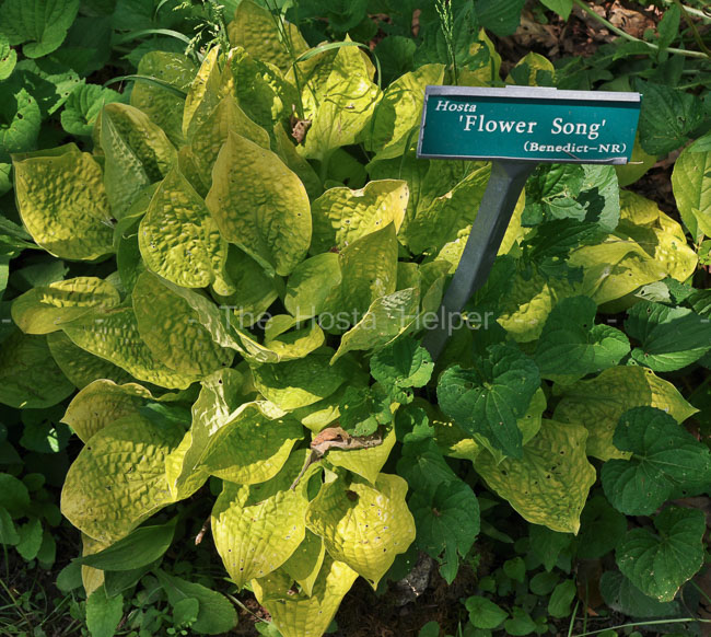 The Hostapedia by Mark Zilis (2009), "...sometimes been listed as one word, i.e. 'Flowersong'..." Seedlings include H. 'Songbird'.