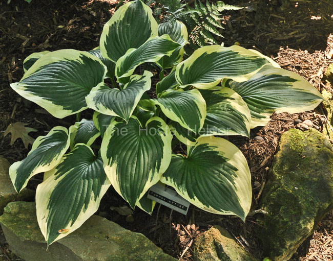 According to The Hosta Handbook by Mark Zilis (2000), "The very thick creamy margins sharply contrast the green center and give it a distinctive appearance. Though the substance is not quite as thick as many Sieboldianas, that is secondary to the greatness of this plant."
