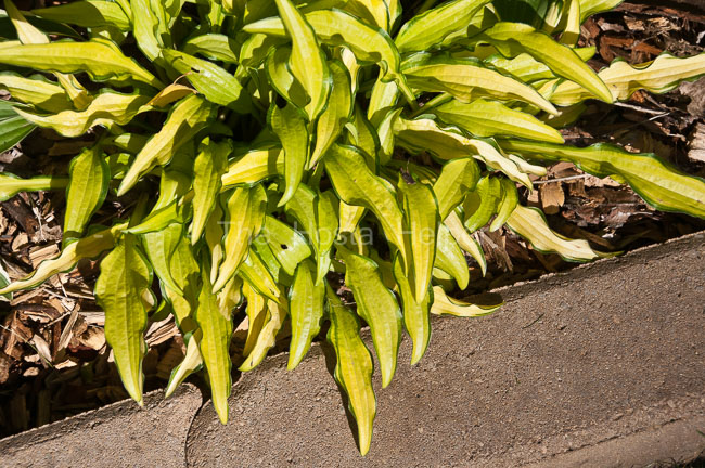This non-registered cultivar from Japan has H. sieboldii in its background. It forms a small size clump of moderately wavy, gold foliage with green marginal variegation.