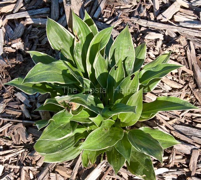 dark green foliage that has a very thin pure white marginal variegation. The