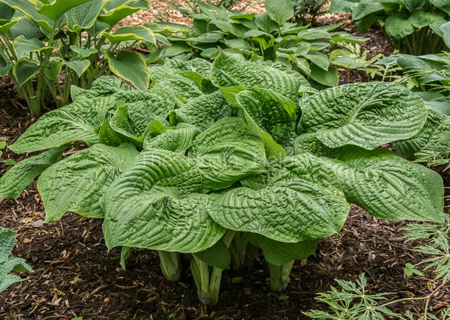 It is a giant size (28 inches high by 48 inches wide), upright hosta with