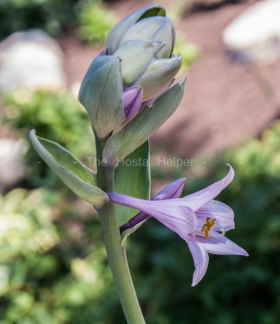 This plant was labeled as 'Glen Eyeful' but we could find nothing on a hosta of that name. However, there is one called 'Glen Eyeful Tower' which fits the description of the plant shown above. Perhaps it is a case of mislabeling.