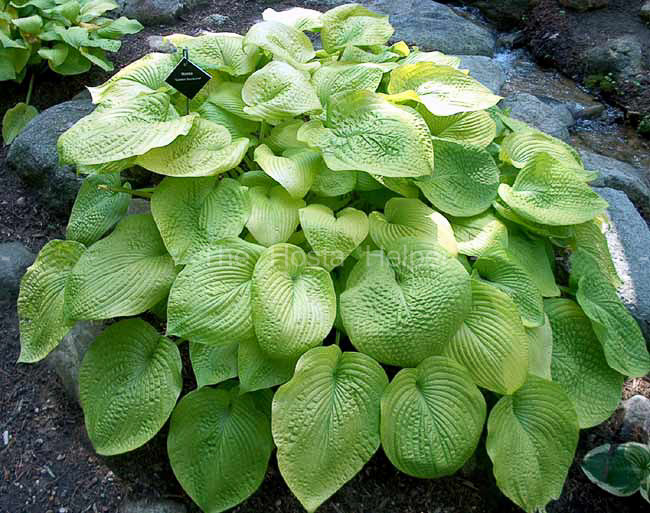 of Minnesota. It is a sport of H. 'Frances Williams' which forms a medium size mound of heart-shaped, elongated