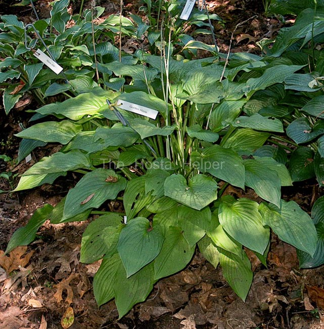 This seedling of H. 'Fortunei Aurea' was registered by the British Hosta and Hemerocallis Society (BHHS) on behalf of English hybridizer, Eric Smith in 1988. It is gold colored in the spring when it first emerges but changes to pale green as the season progresses. This large size (20 inches high) hosta bears pale lavender flowers from mid-July into August.