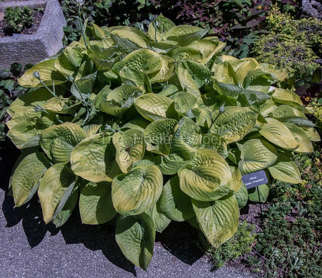 According to The Hostapedia by Mark Zilis (2009), "...has always attracted me. The wavy leaves have impressive substance and a color that changes from chartreuse to medium gold during the growing season."