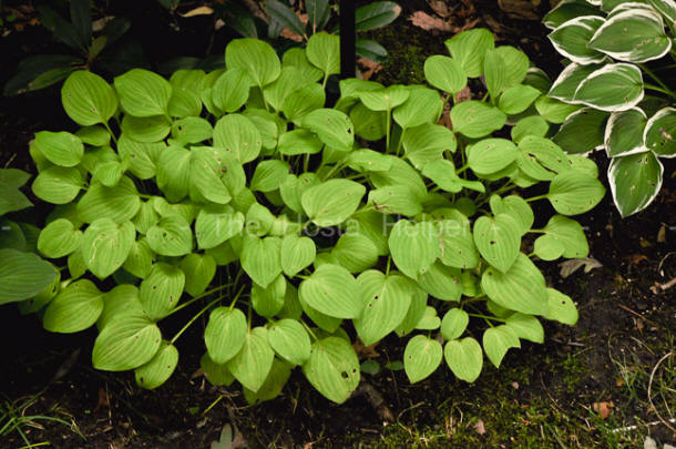 H. 'Fortunei Albopicta' whose green-bordered leaves have a