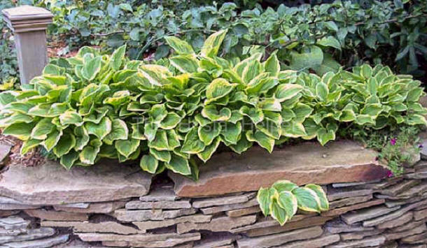 H. 'Fortunei Albopicta' whose green-bordered leaves have a