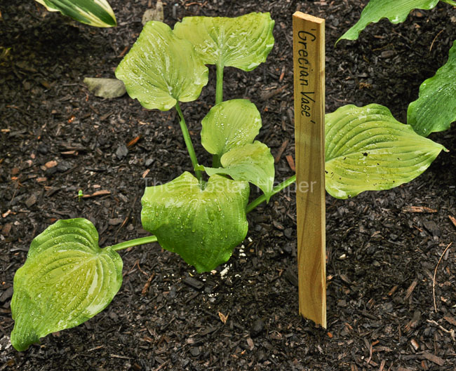 describe 'Grecian Vase' as having chartreuse foliage, the Hosta Library photo depicts either a margined form of 'Grecian Lace'