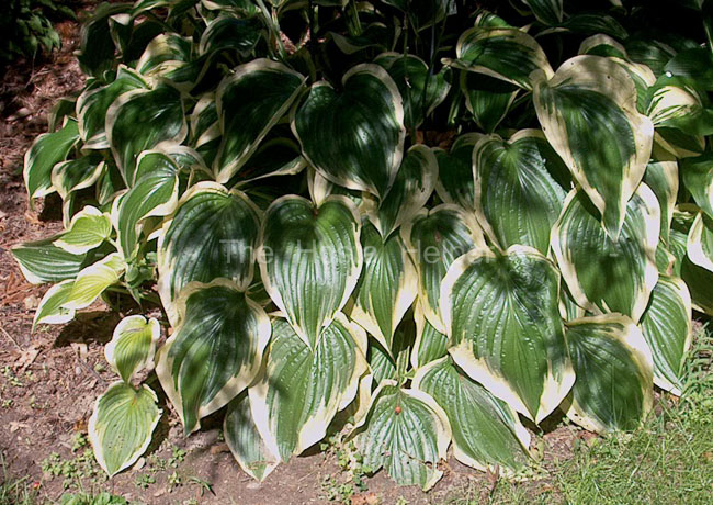 centered with a white marginal variegation. Pale lavender flowers open in mid-July to mid-August.