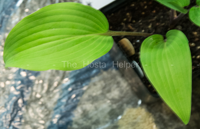 This non-registered cultivar is a hybrid of H. 'Cinnamon Sticks' × H. 'Gilt by Association' is from Kathie Sisson of Connecticut. It is a medium size hosta with blue-green foliage that has red petioles and bears lavender flowers.