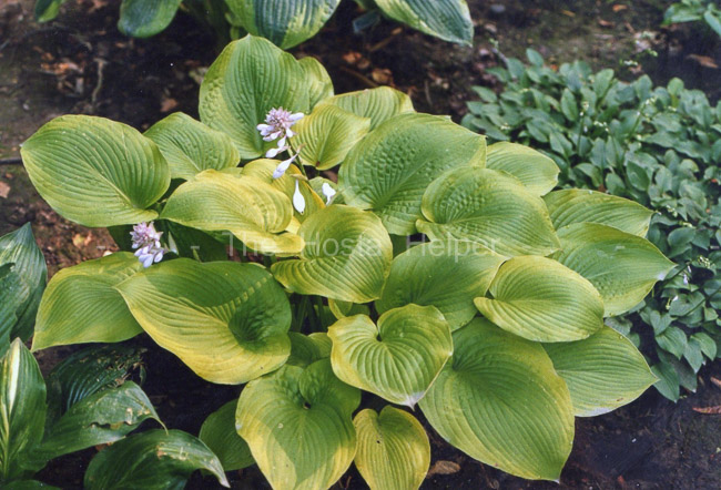 and wavy with a slightly shiny underside. From late June into July, pale lavender flowers bloom on scapes just above the